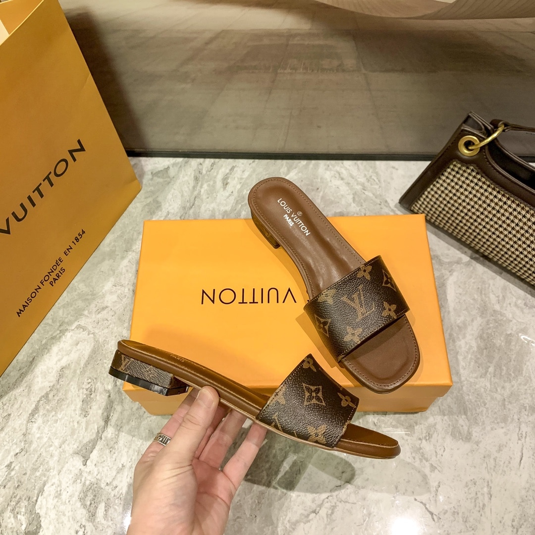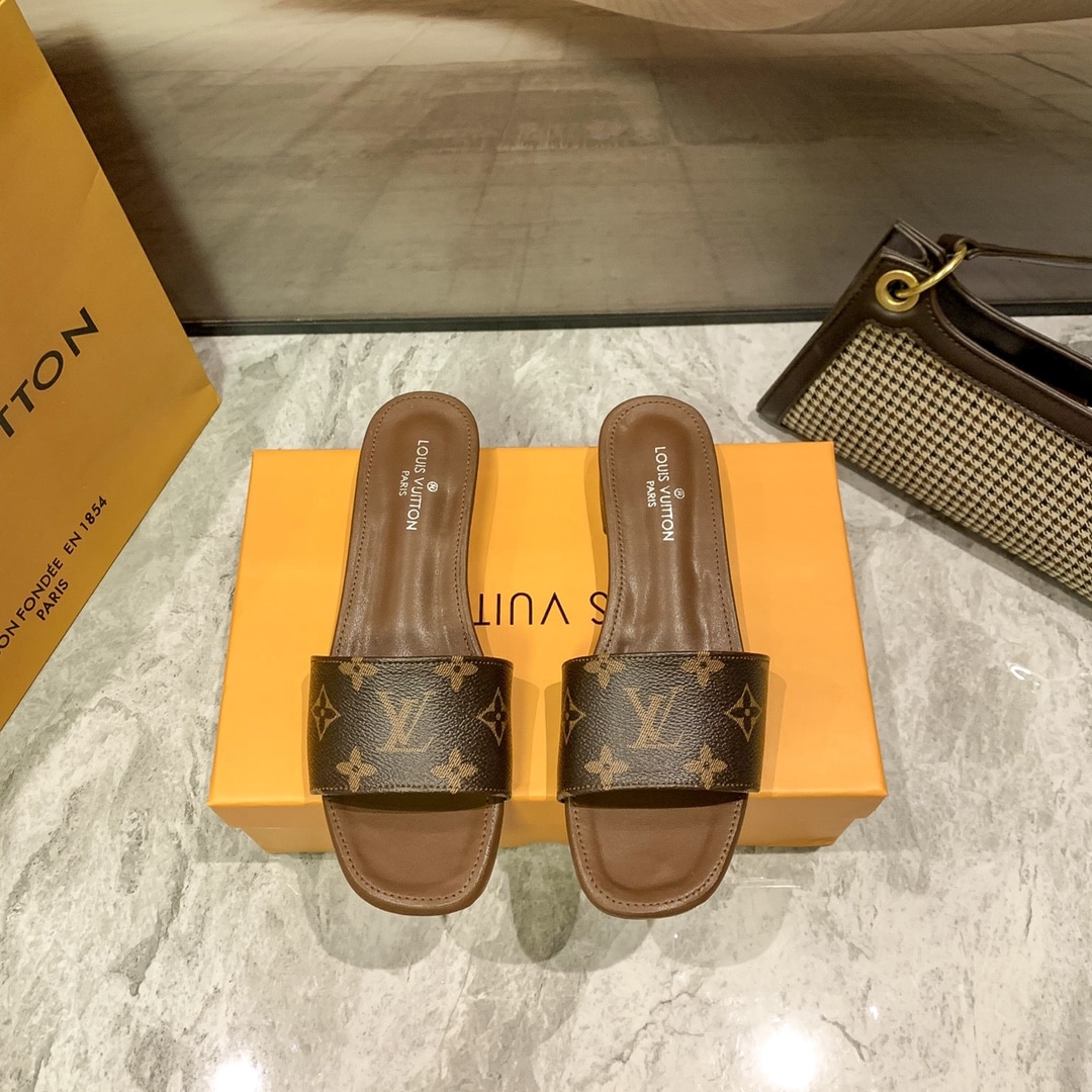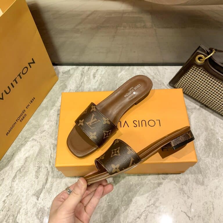 Replica 1:1 – Louis Vuitton Lock It Flat Mule Monogram Brown