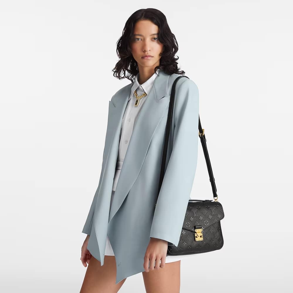 The Louis Vuitton Métis Pochette Bag in Black is a stylish and versatile accessory that combines practicality with luxury. Crafted from supple Monogram Empreinte leather, this bag features the brand’s signature embossed pattern. Its spacious interior, secured with a flap and magnetic clasp, comfortably holds essentials. The adjustable strap allows for crossbody or shoulder wear, making it a perfect companion for everyday use or special occasions. The sleek design and timeless black color ensure it remains a stylish addition to any wardrobe.