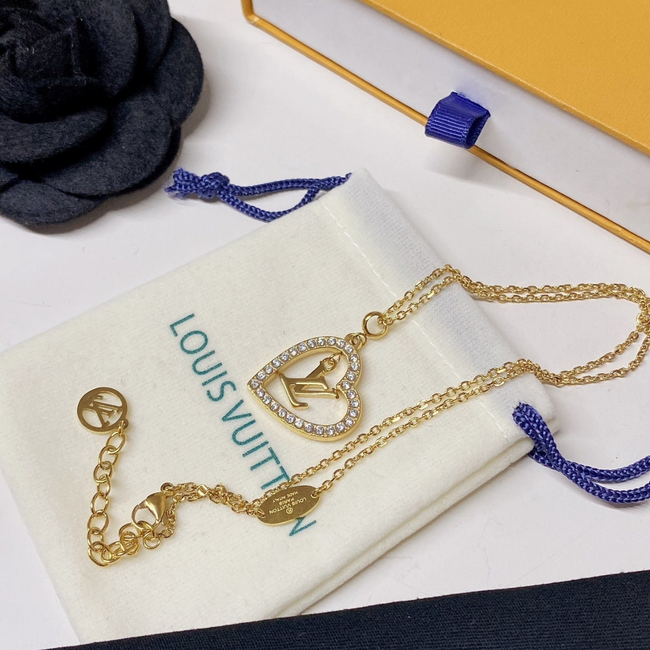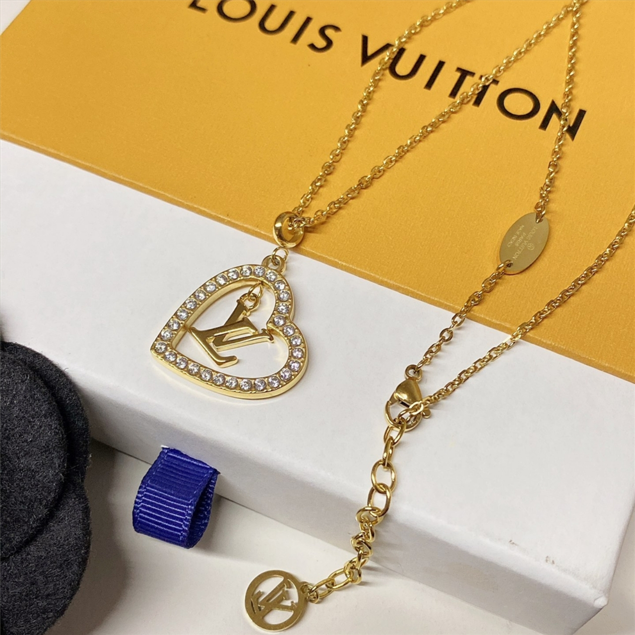 – LV logo and heart shaped decoration