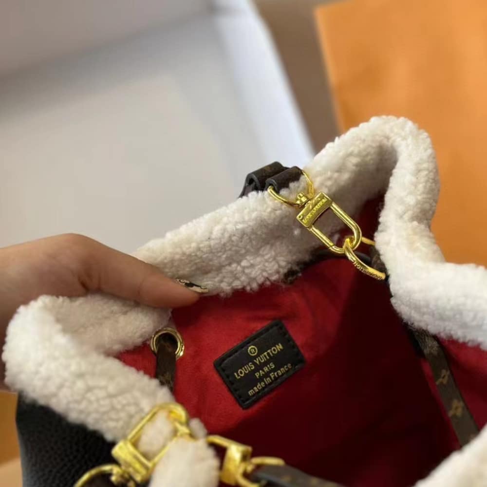 Replica 1:1 – Louis Vuitton Neonoe Handbag Leather And Monogram Teddy Shearling Mm Black 25cm