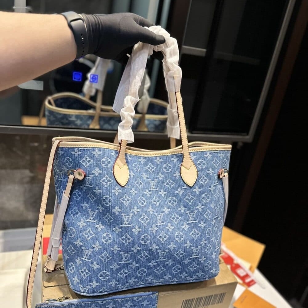 Replica 1:1 – Louis Vuitton Neverfull Monogram MM Handbag Denim 28cm