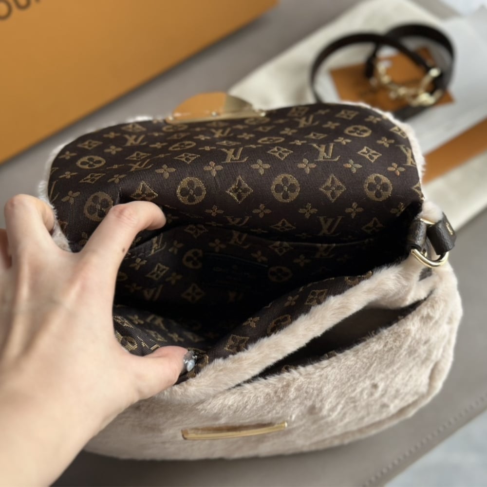Crafted from plush shearling, this Sunset bag lives up to the name of the LV Ski Cozygram collection it belongs to. The capacious design is perfectly sized for apres-ski moments, defined by its gleaming gold-toned hardware and signature Monogram details. Use it to store daytime and evening essentials, and to instantly elevate any winter outfit.