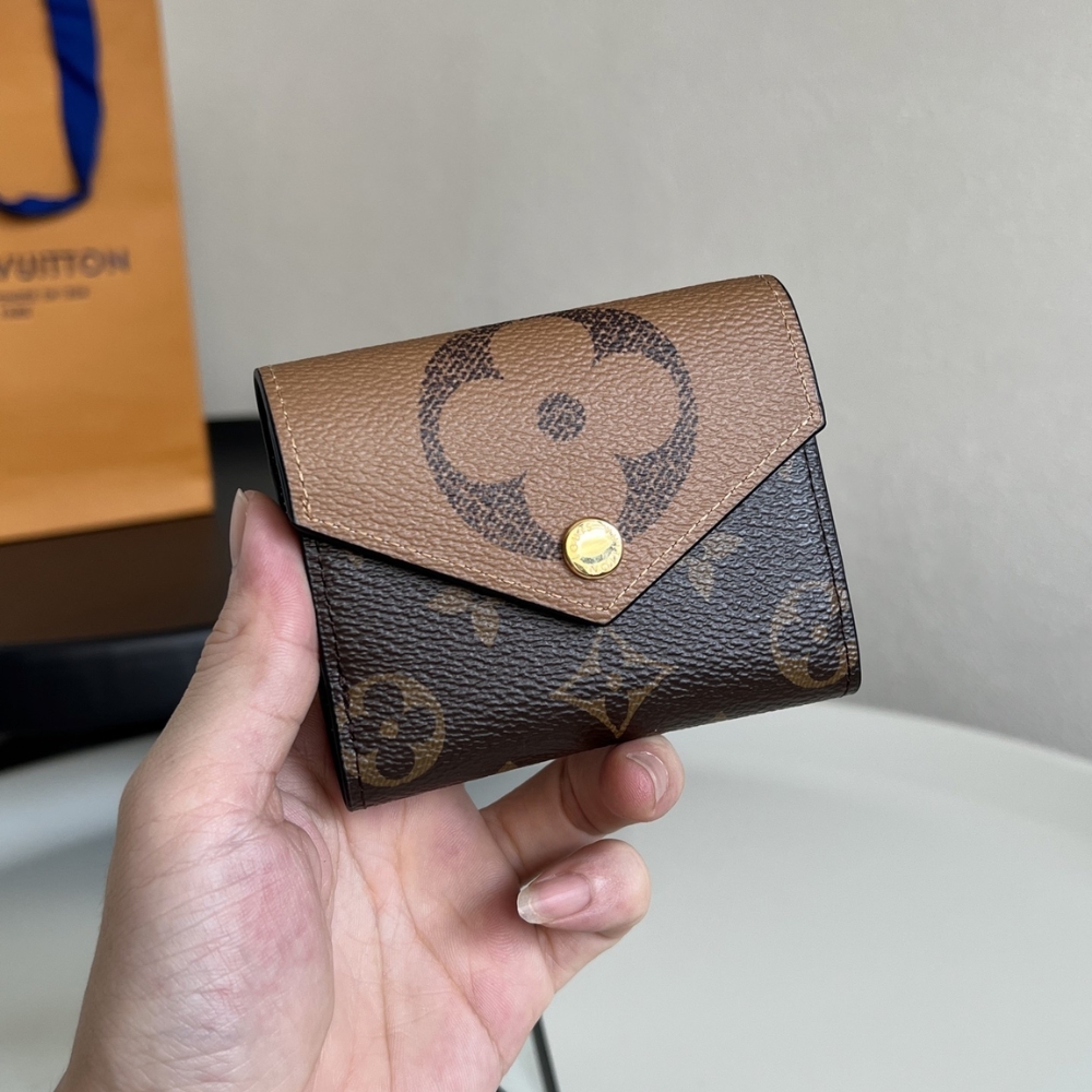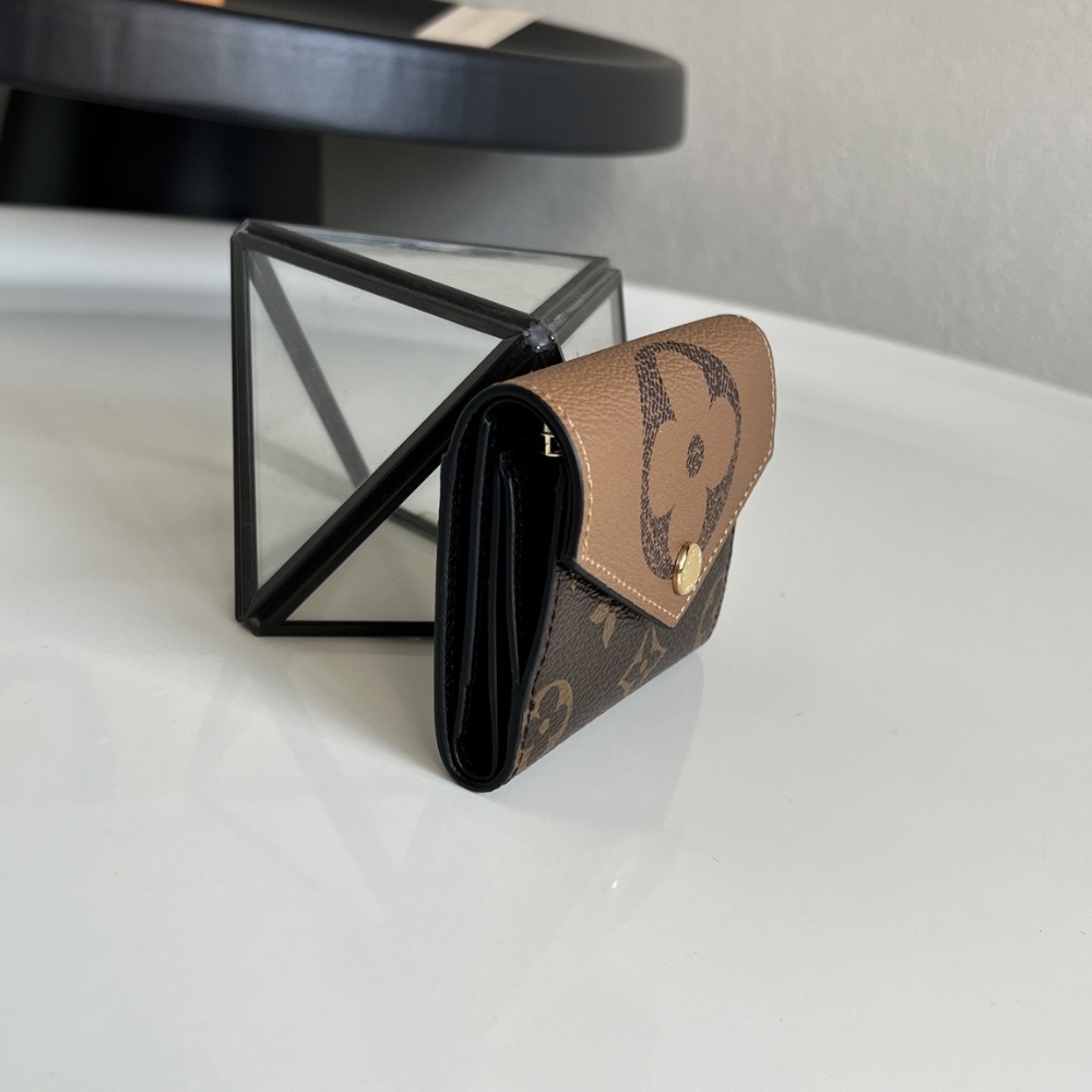 The Louis Vuitton Zoe Wallet in Monogram Canvas and Monogram Giant Reverse Canvas is an exceptionally compact and stylish accessory, perfect for those who prefer “quiet luxury” in a small package.