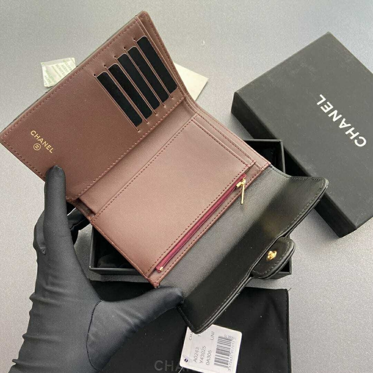 Keep your essentials stylishly organized with this sleek Chanel card holder. Crafted from smooth black leather and featuring the iconic Chanel logo, its compact 15cm size fits perfectly in your hand or bag, combining timeless elegance with everyday convenience.