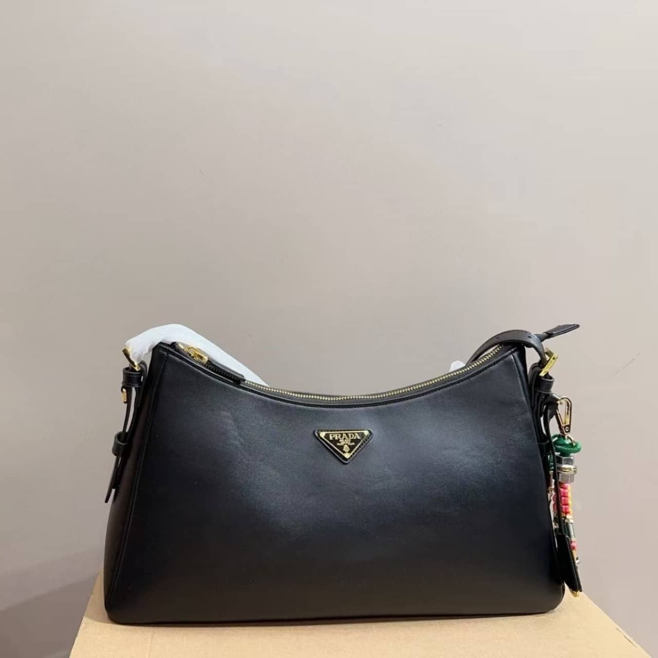 Replica 1:1 – Prada Aimée Large Leather Shoulder Bag Black 39Cm 1BC228 2CYS F0002 V LVM