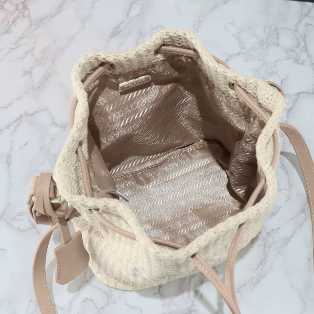 Replica 1:1 – Prada Crochet Bucket Bag Beige 24cm