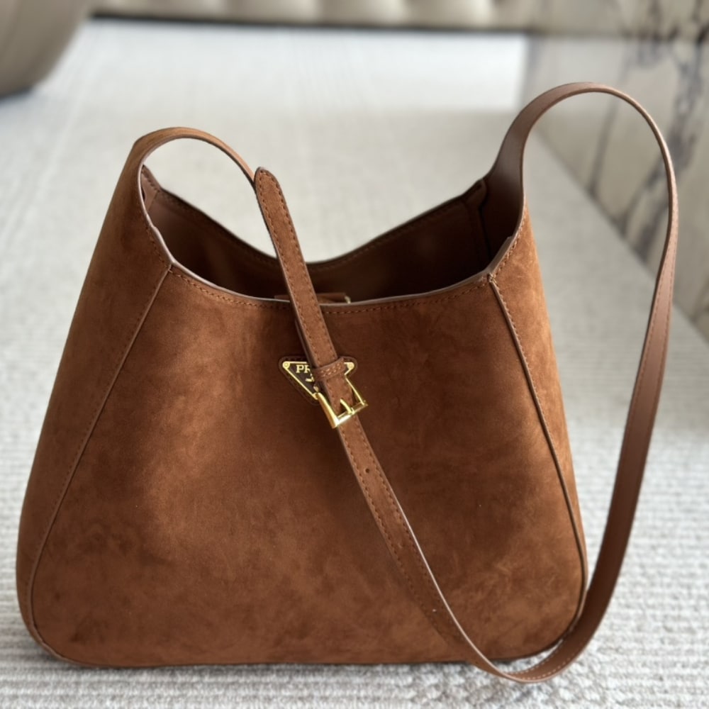 Replica 1:1 – Prada Suede Leather Hobo Bag 34cm