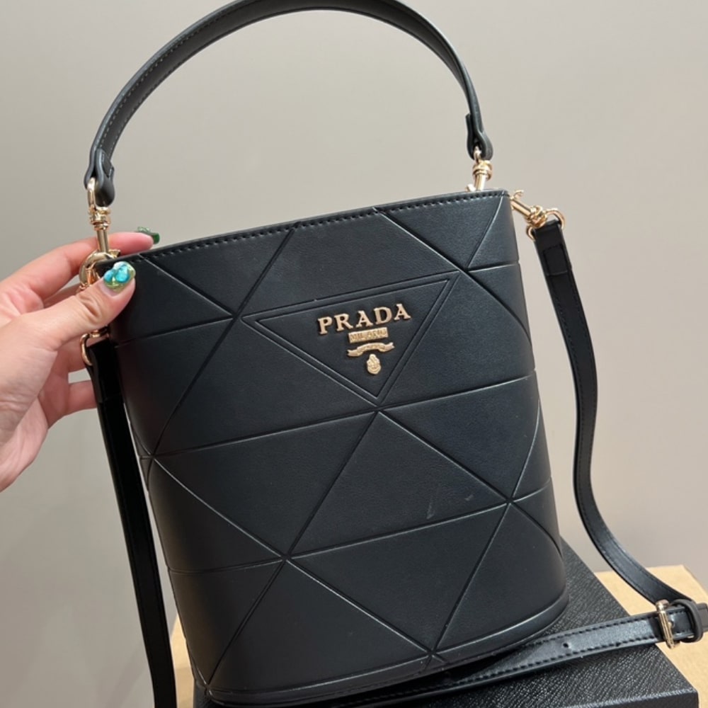 Replica 1:1 – Prada Symbole Quilted Bucket Bag Black 21Cm