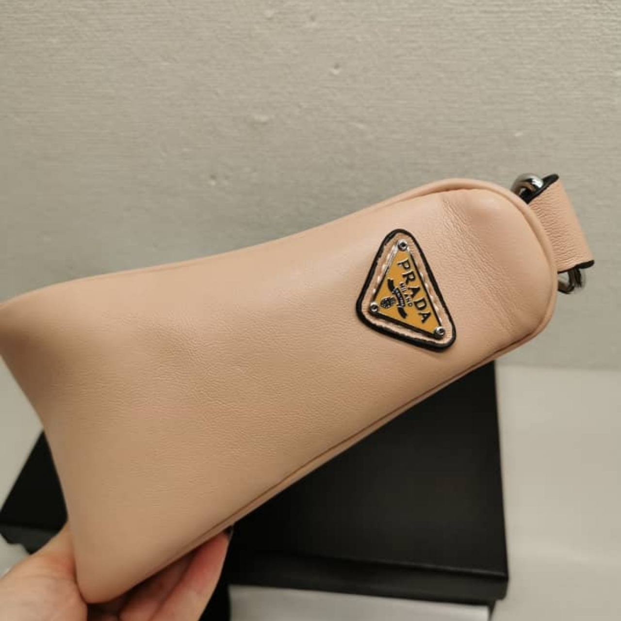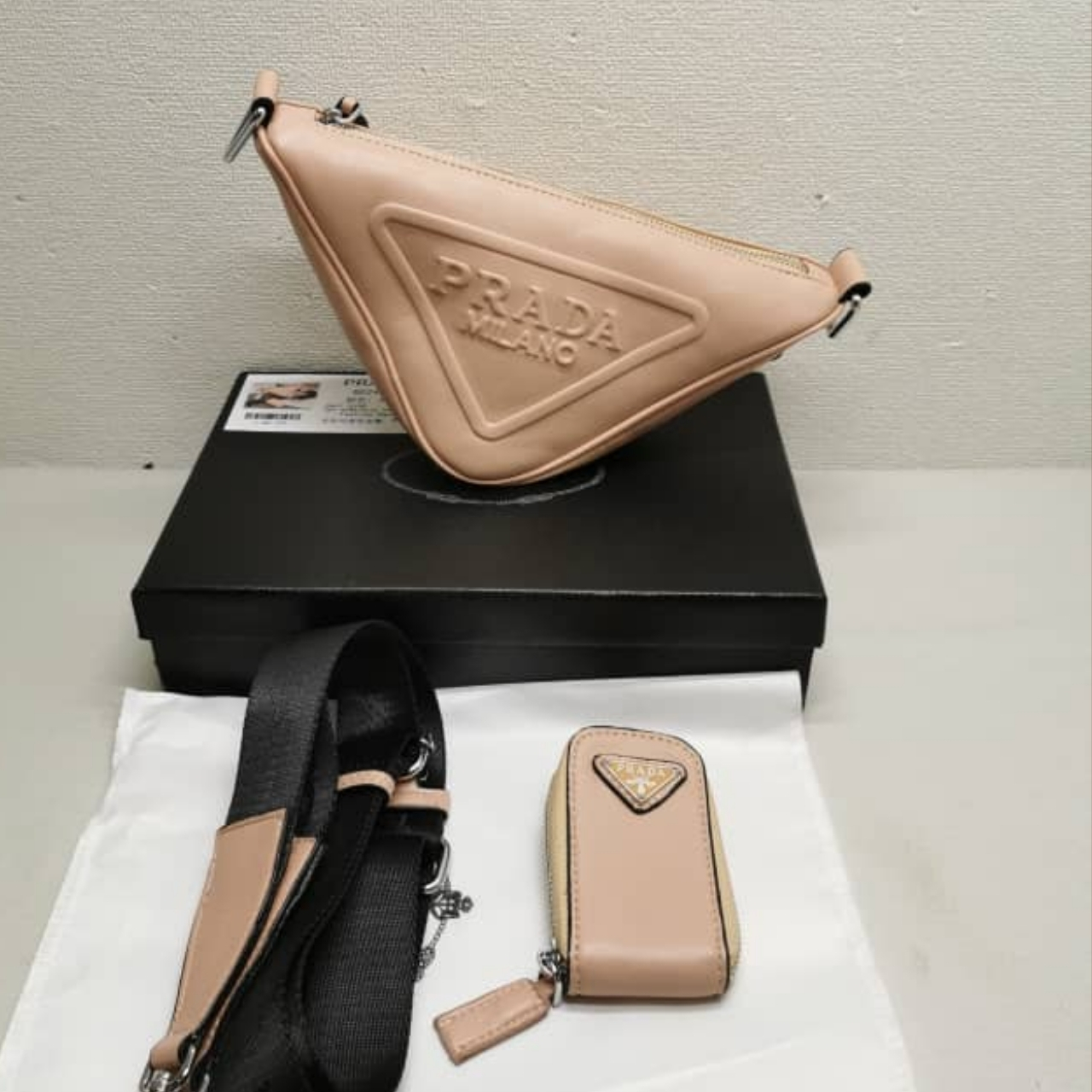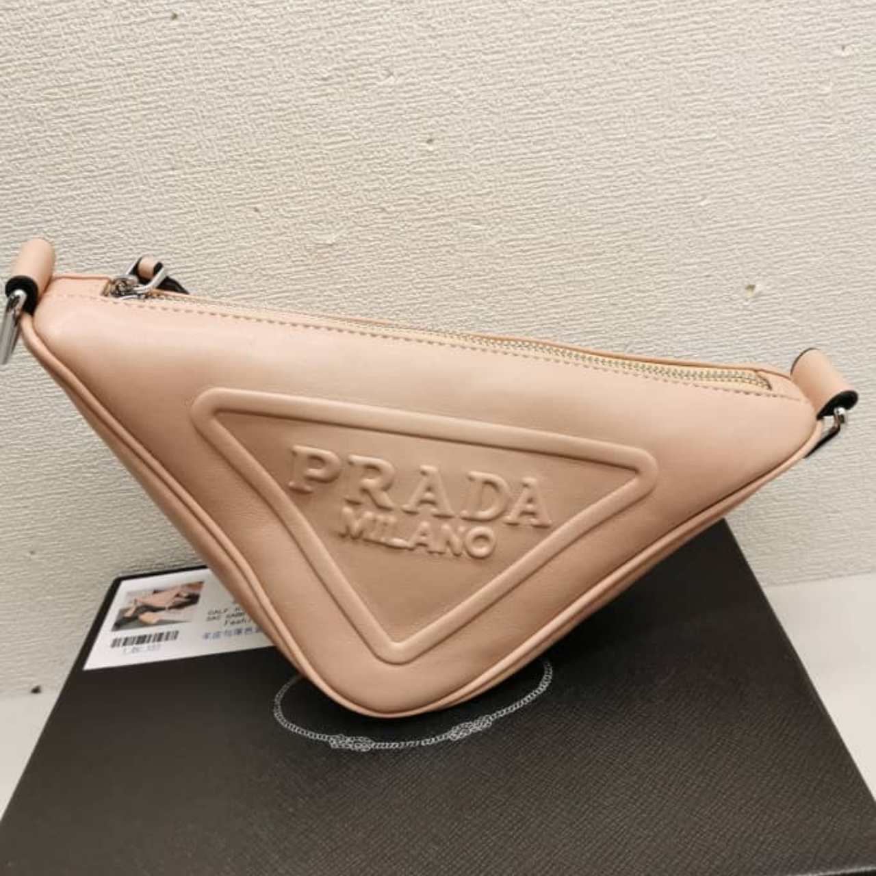 Replica 1:1 – Prada Triangle Leather Shoulder Bag Sand Beige 27cm