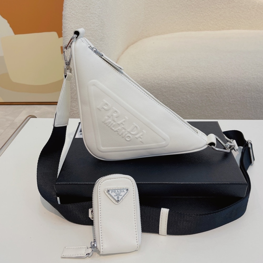 Replica 1:1 – Prada Triangle Leather Shoulder Bag White 27cm