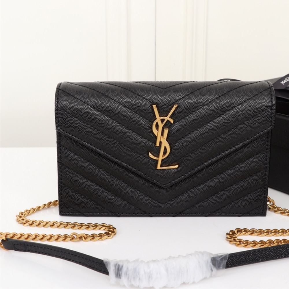 Replica 1:1 – Saint Laurent Cassandre Envelope Chain Wallet Black 20cm