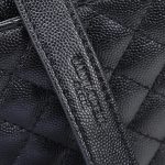 The Saint Laurent Envelope Small Bag in Black is a timeless 21cm accessory crafted from leather, featuring chic vertical, chevron, and diamond quilted topstitching. With bronze-toned hardware and a sliding leather-and-chain strap for versatile carrying, its luxurious grosgrain lining adds an elegant touch.