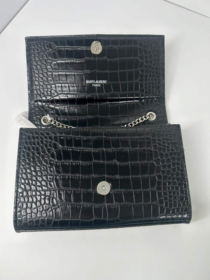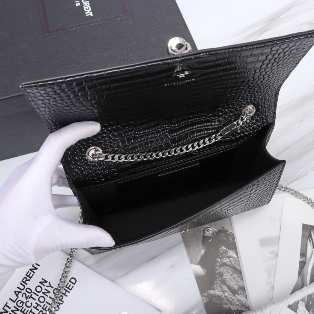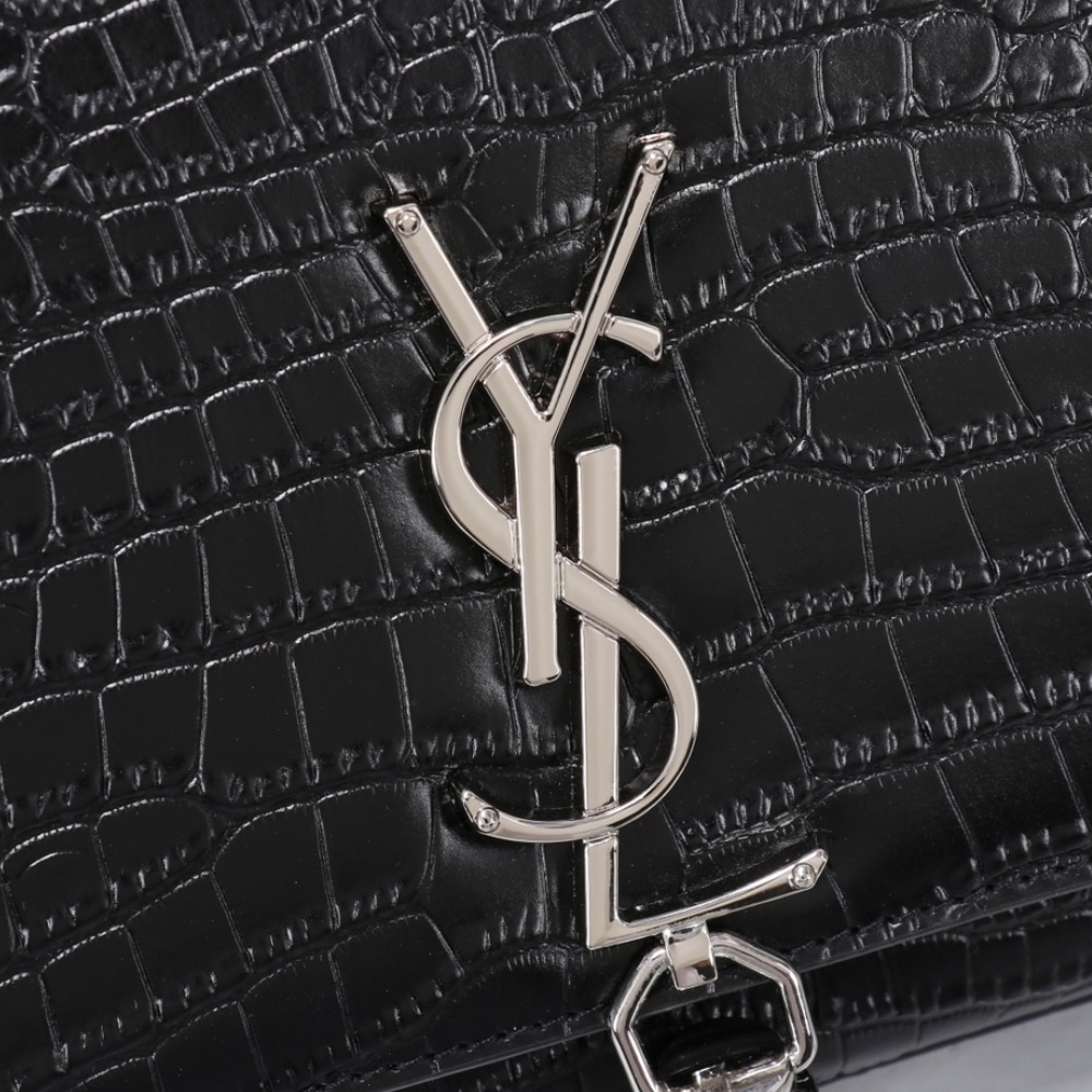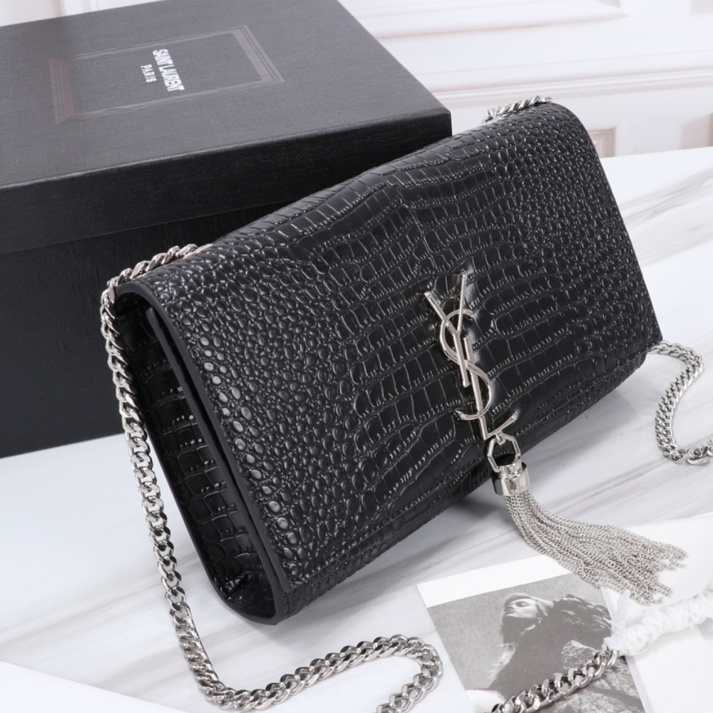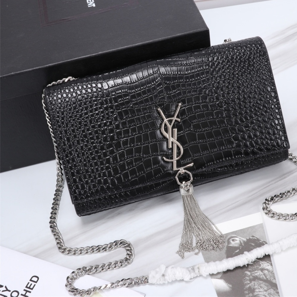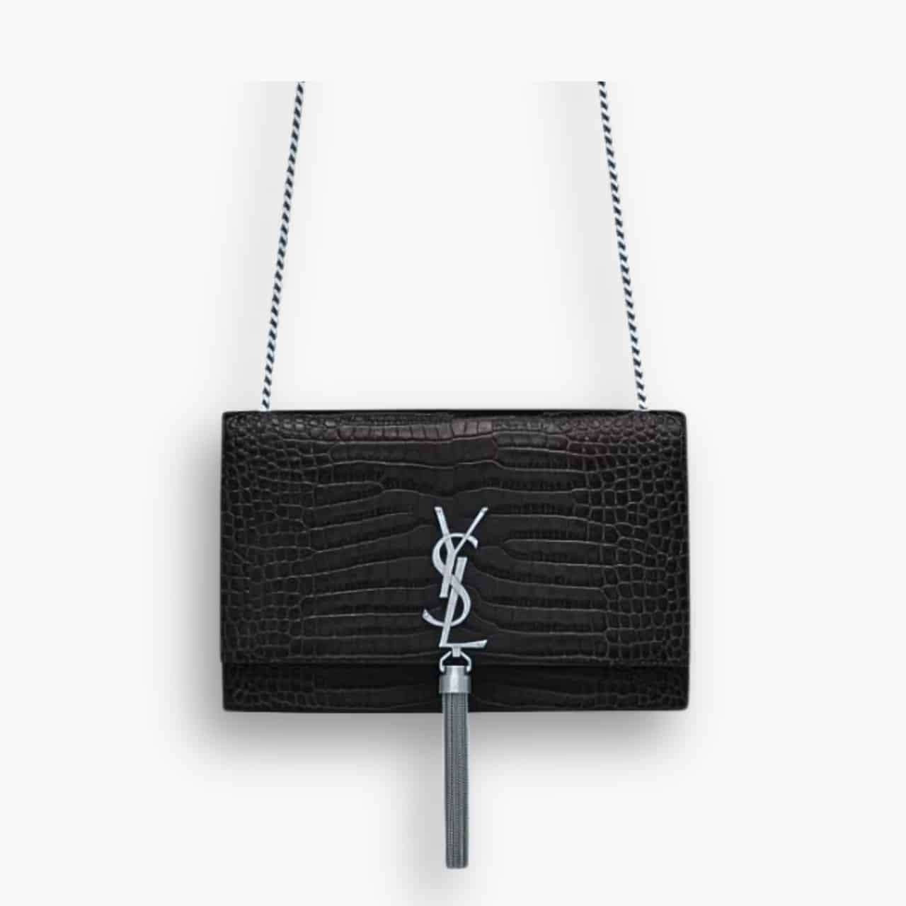 Replica 1:1 – Saint Laurent Kate Medium Tassel In Crocodile Mirror Effect Black 24cm