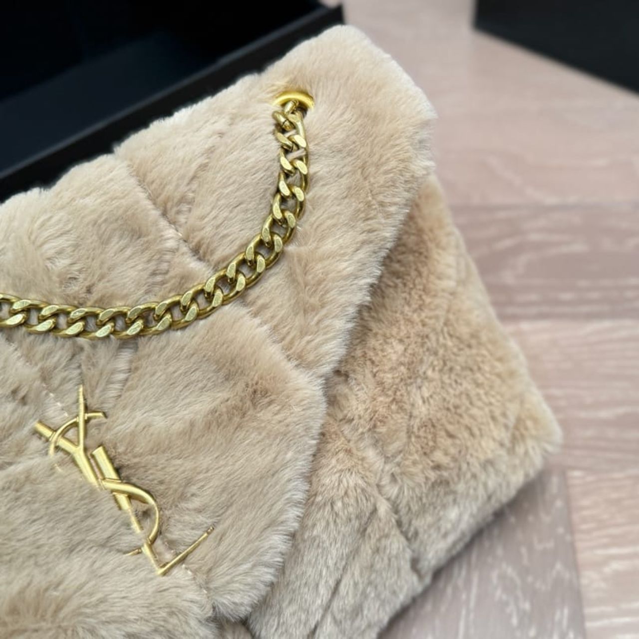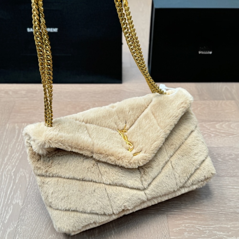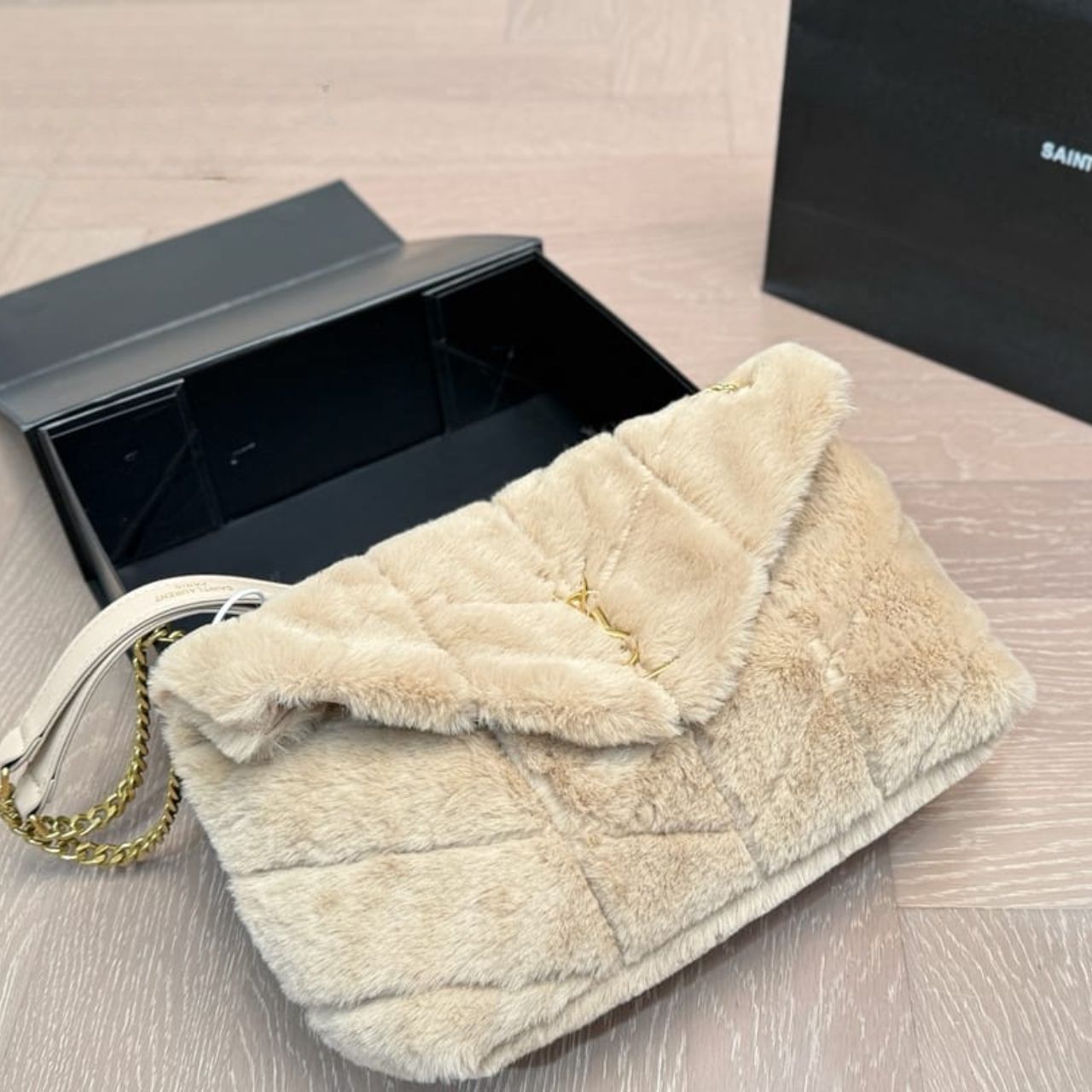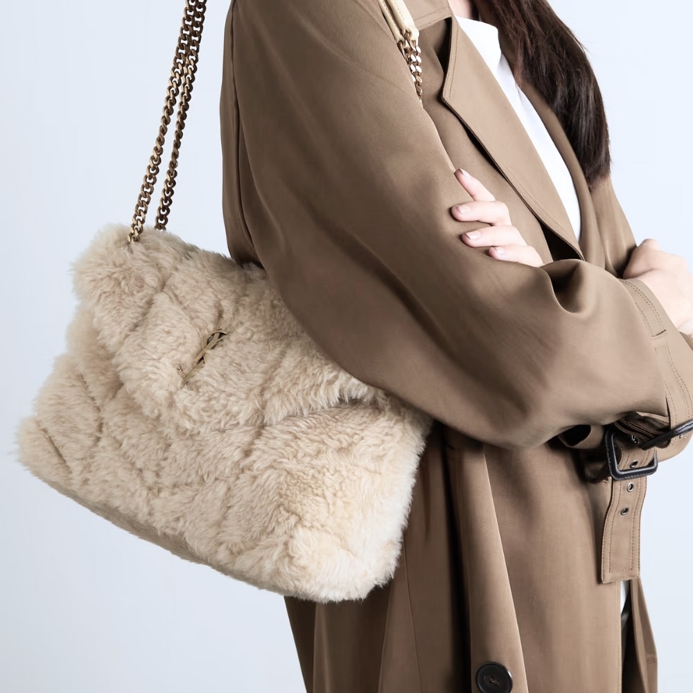 Saint Laurent Loulou Shearling Puffer Bag Beige 28cm