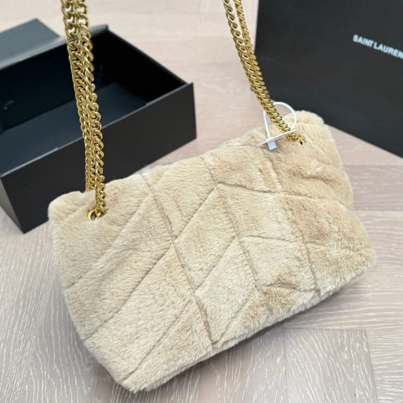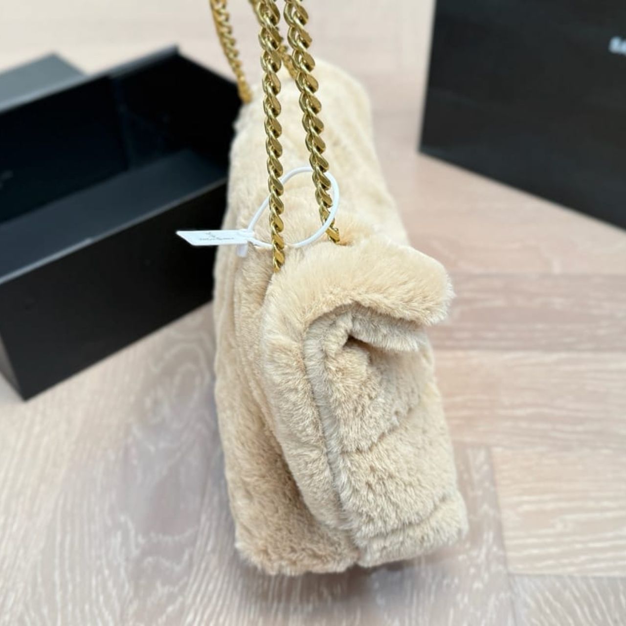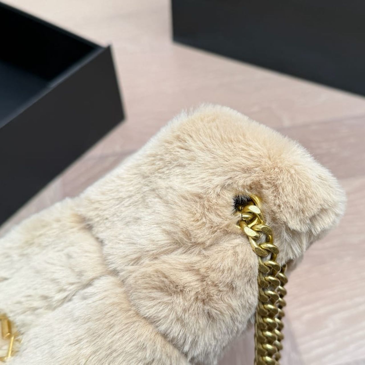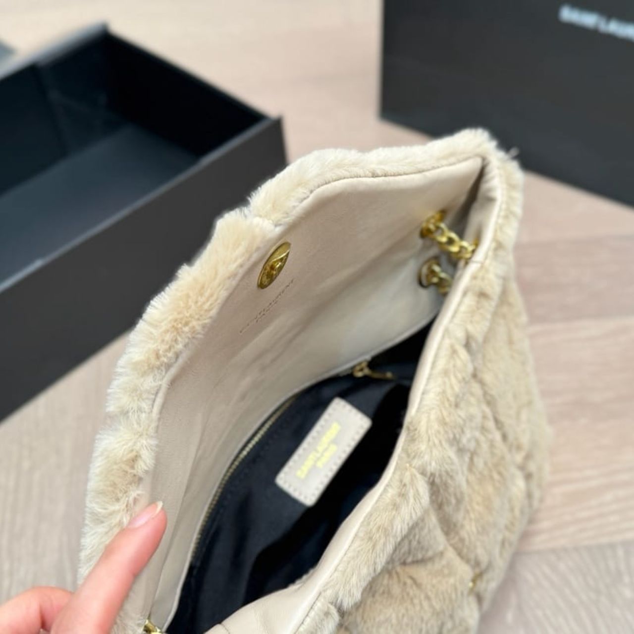 Saint Laurent Loulou Shearling Puffer Bag Beige 28cm