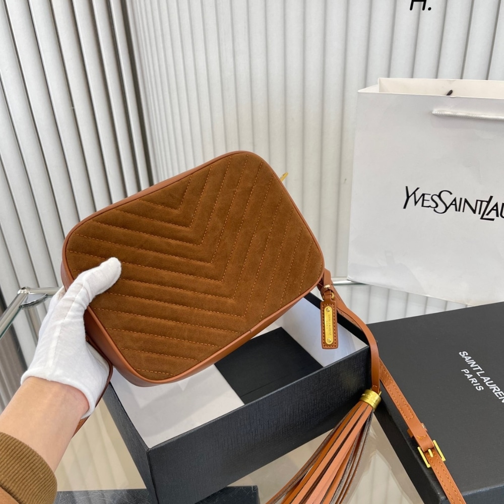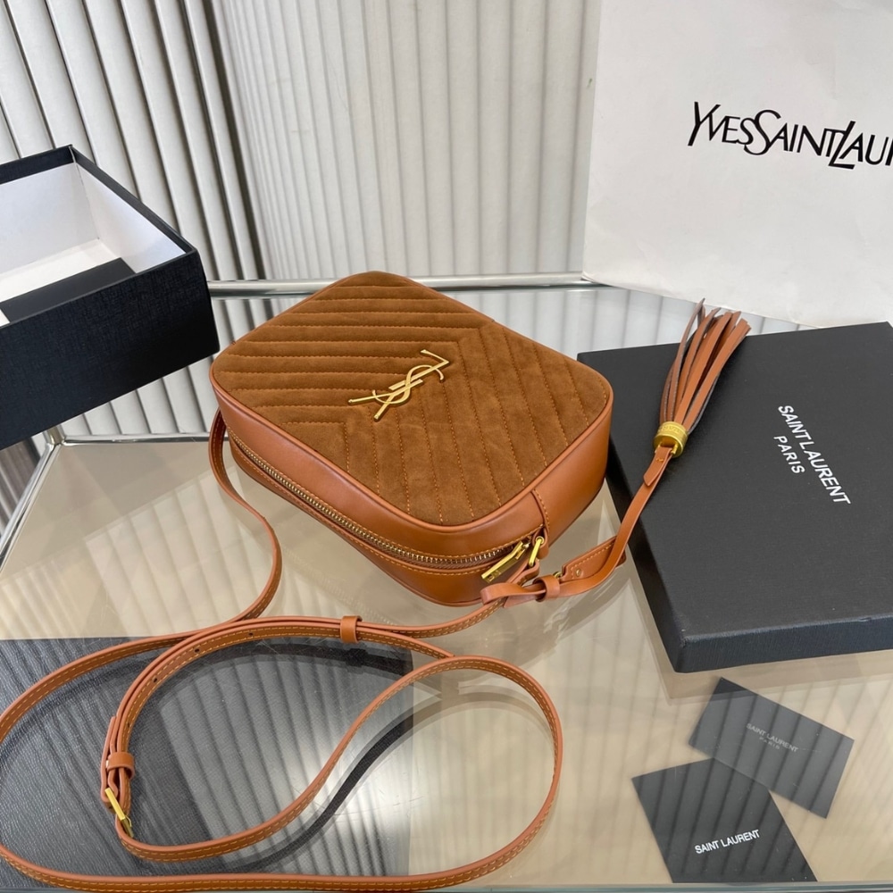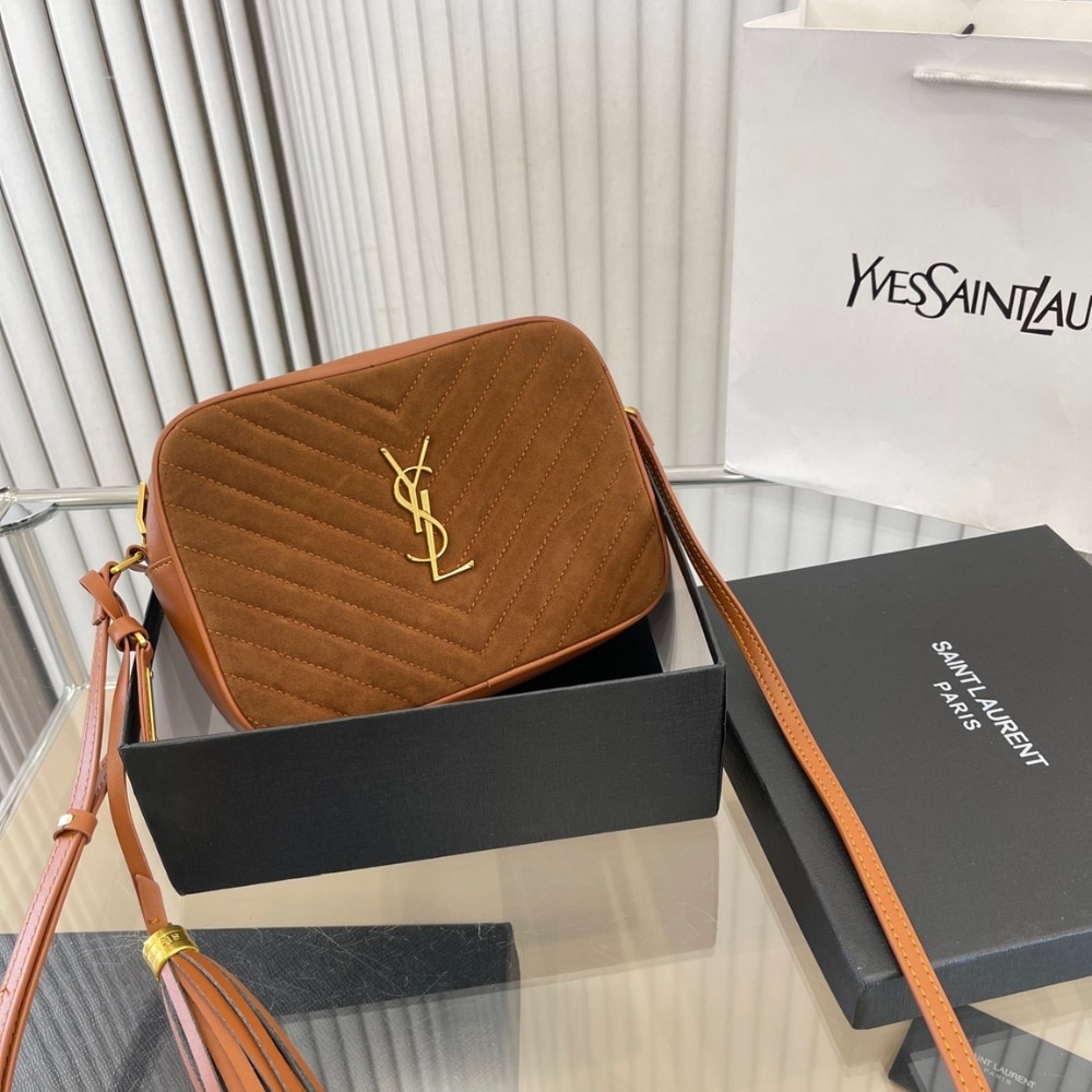 Replica 1:1 – Saint Laurent Suede Matelasse Monogram Lou Camera Bag Cinnamon