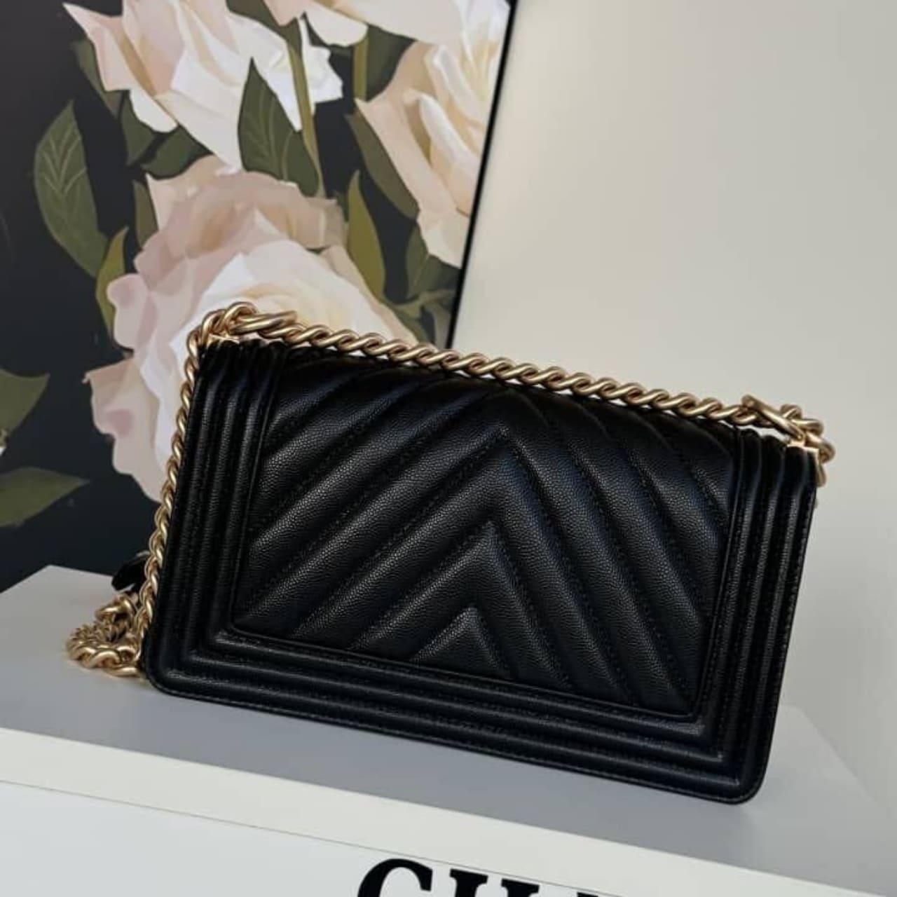 Replica 1:1 – ( Super Vip 1:1 ) Chanel Le Boy Chevron Black 25Cm
