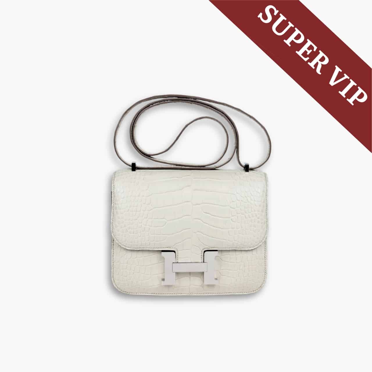 Replica 1:1 – ( Super Vip 1:1 ) Hermès Mini Constance 19 Shiny Alligator White