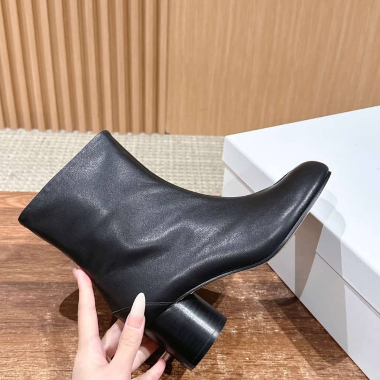 The ankle boots feature a 6cm cylindrical heel and the Tabi split-toe shape, inspired by the traditional 15th century Japanese sock bearing the same name – launched for the Maison’s debut collection in 1989. It captures the avant-garde and insubordinate spirit of the Maison and exists as a heritage classic, continually explored through each collection.