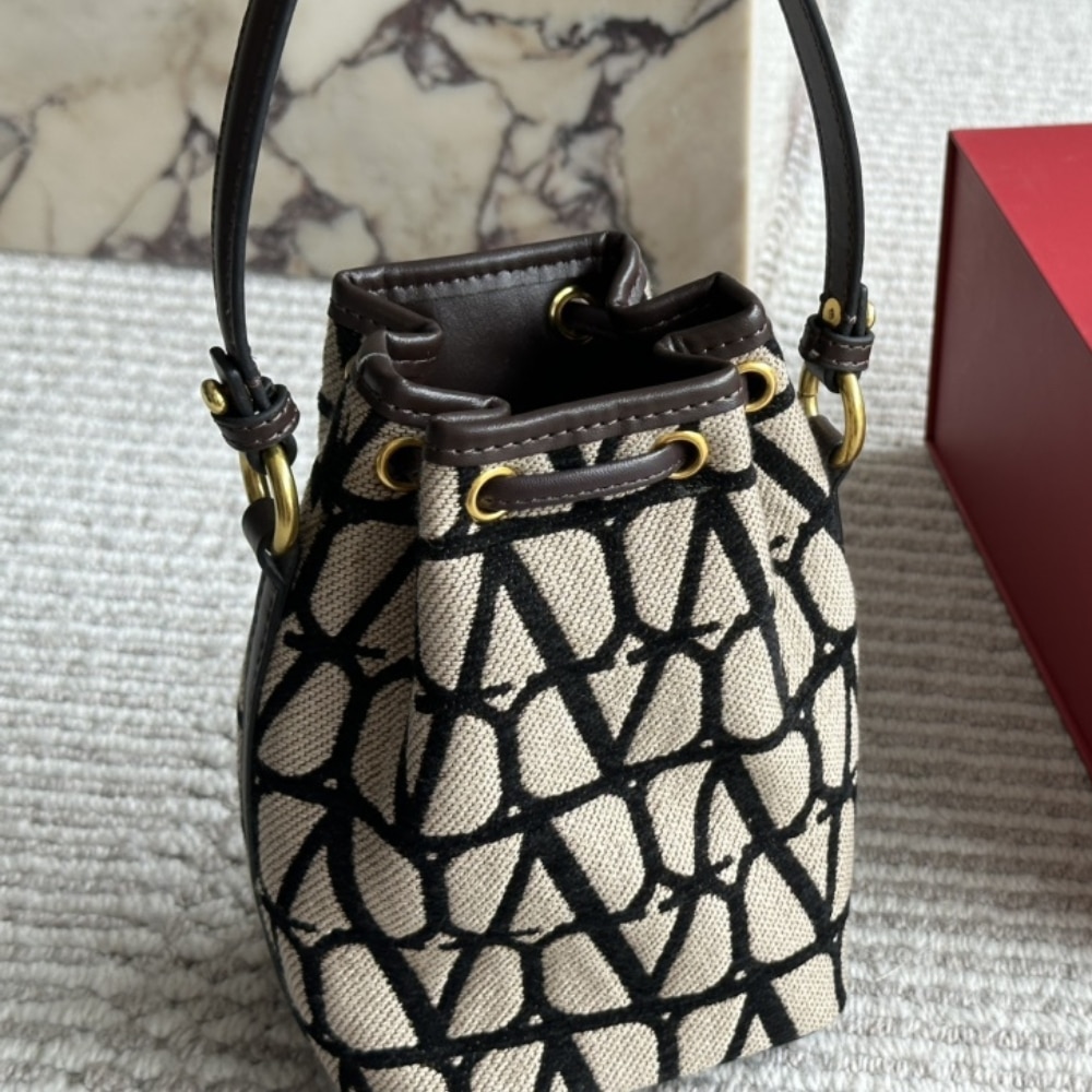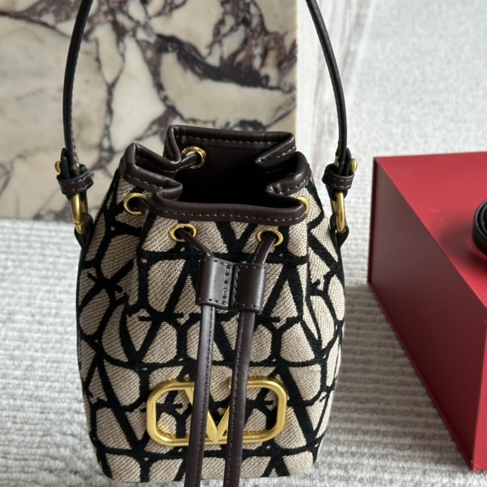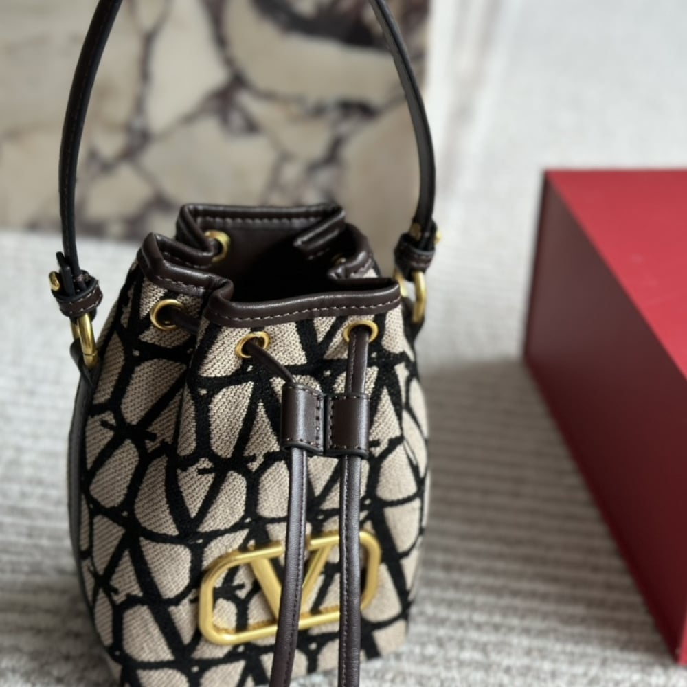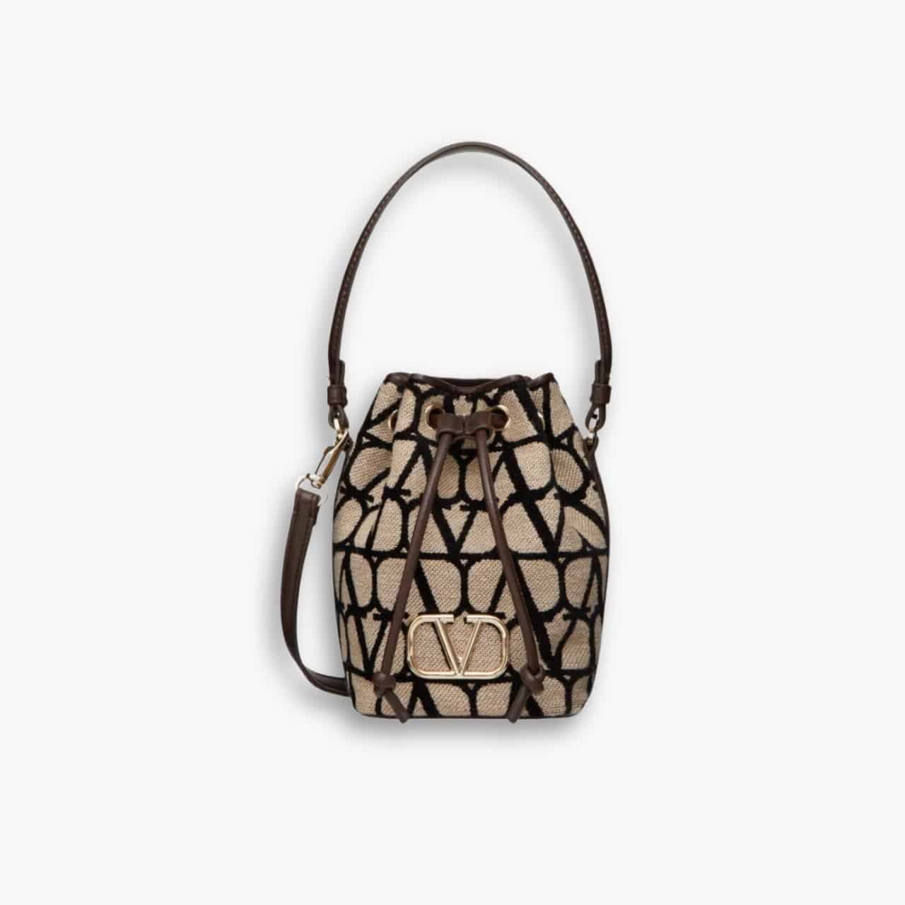 Replica 1:1 – Valentino Mini Vlogo Signature Bucket Bag In Toile Iconographe Brown 22cm